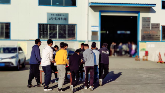 本次的汽车实验室大清理分步进行。第一步是先将实验室内的仪器设备如汽车发动机,汽车车身,轮胎,设备柜等搬到室外,由于这些设备大多都是铁制品,属于重量级型,每搬动一台设备都需要几个人,但是同学们都精力充沛,非常积极的参与。