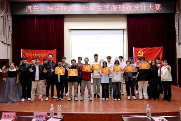 比赛最后,全体嘉宾、评委与获奖班级代表合影留念,定格下这一充满青春活力的美好瞬间。同学们有序参与会场整理,展现了五院学子良好的文明素养。 此次班服班旗设计大赛不仅为新生提供了展示创意才华的平台,更强化了班级的向心力与凝聚力,为学院校园文化建设注入了新的活力。据悉,汽车工程学院将持续开展各类特色校园文化活动,助力新生快速融入大学生活,在丰富多彩的实践中锤炼品格、增长才干,为学院高质量发展贡献青春力量。