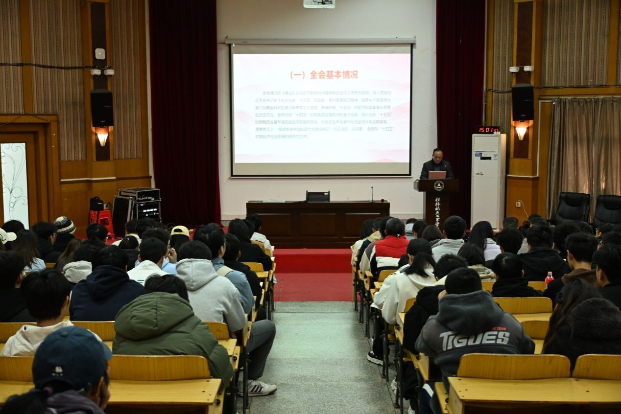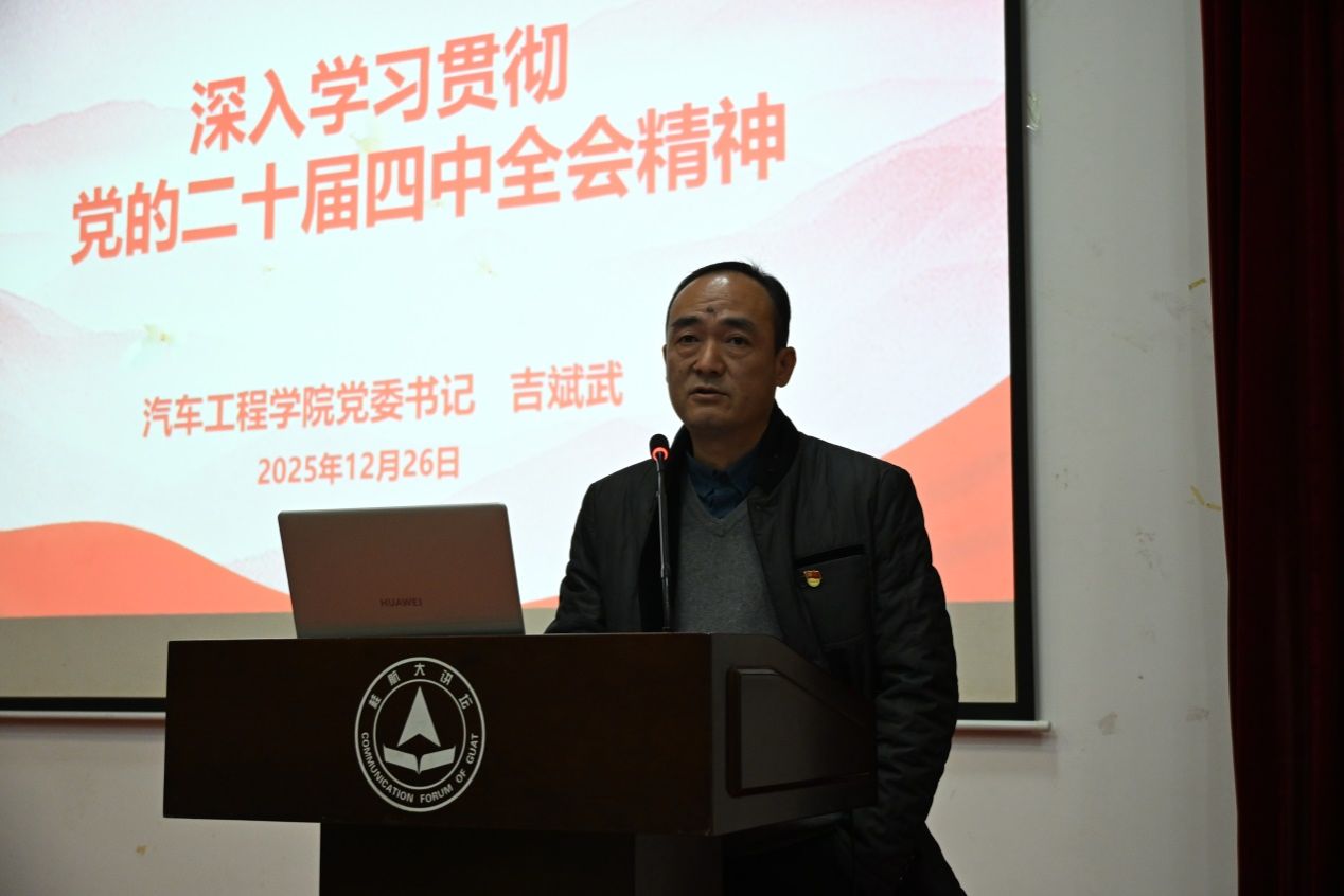 为深入学习宣传贯彻党的二十届四中全会精神,按照学校党委部署安排,12月26日下午,我院在北校区致远楼108教室召开党的二十届四中全会精神学习宣讲会。学院党委书记吉斌武同志作宣讲,学院教师、学生党员、入党积极分子、团员等200多人参加会议。
